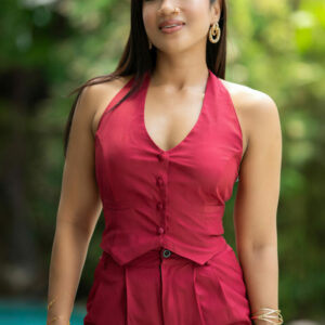BAYLEEE DANTE MAROON HALTER NECK TOP