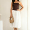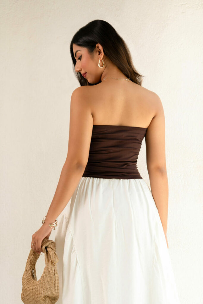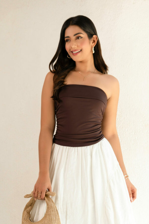 Chic and simple, this strapless brown tube top is the perfect mix of minimal and stylish. Whether you pair it up or down, it keeps your look sleek and effortlessly modern.